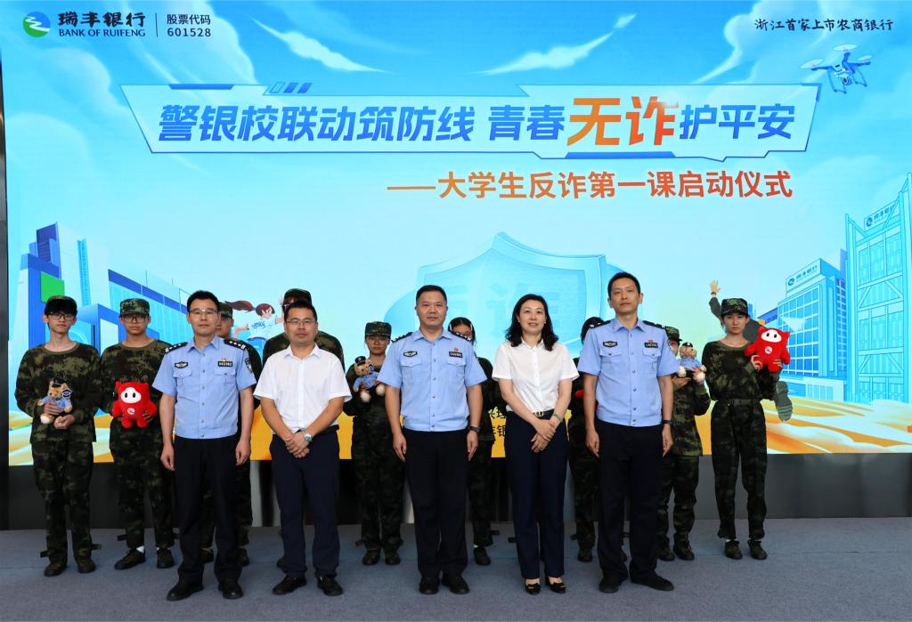 9月1日下午,由公司与绍兴市公安局越城区分局、瑞丰银行联合主办的“警银校联动筑防线 青春无诈护平安”——新生反诈第一课启动仪式在瑞丰银行镜湖数字金融中心举行。越城公安分局、瑞丰银行、校警驿站相关负责人、学院师生代表共同参与,正式开启新学年新生反诈教育第一课。