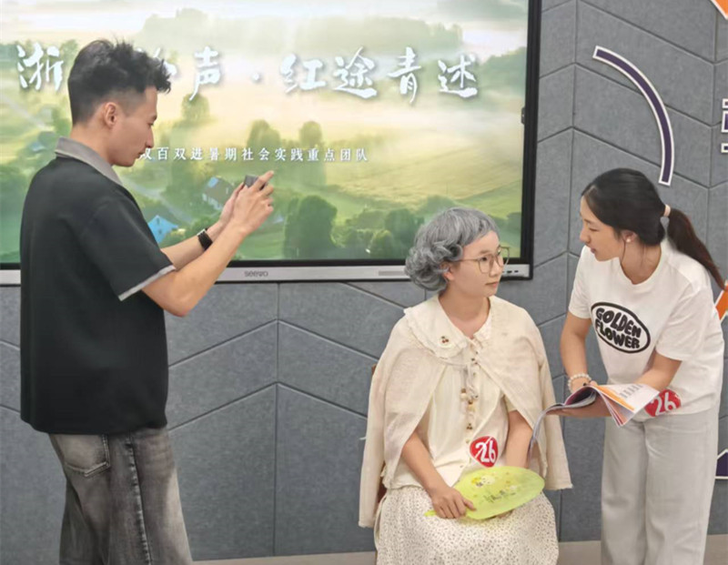 语言文学分院“浙里拾声 红途青述”实践团入选“绍兴市优秀团队”。团队以“传承红色基因、活化方言文化”为核心目标,深入浙江多地红色教育基地与城乡社区开展实践:通过走访老党员、录制口述历史,系统采集整理方言红色故事,初步构建起兼具地域特色与红色内涵的“红色方言词库”;线上依托短视频平台与新媒体矩阵,创作发布系列红色方言主题内容,扩大理论传播覆盖面;线下创新开设“方言新思想红课堂”,设计“方言扑克牌”互动游戏,以趣味化、本土化方式开展义教服务,让党的创新理论更接地气、更入人心。此外,该团队成功入围由教育部语言文字应用管理司、共青团中央联合组织的2025年“推普助力乡村振兴”全国老员工暑期社会实践志愿服务团队,获批省级创新创业训练项目1项,发布省级以上新闻稿9篇,撰写调研报告3份,申请外观专利1项,并设计推出系列红色方言文创产品与配套教材,最终形成可复制、可推广的“方言+理论”宣讲新模式,为推动党的创新理论青年化阐释、本土化传播注入青春动能。