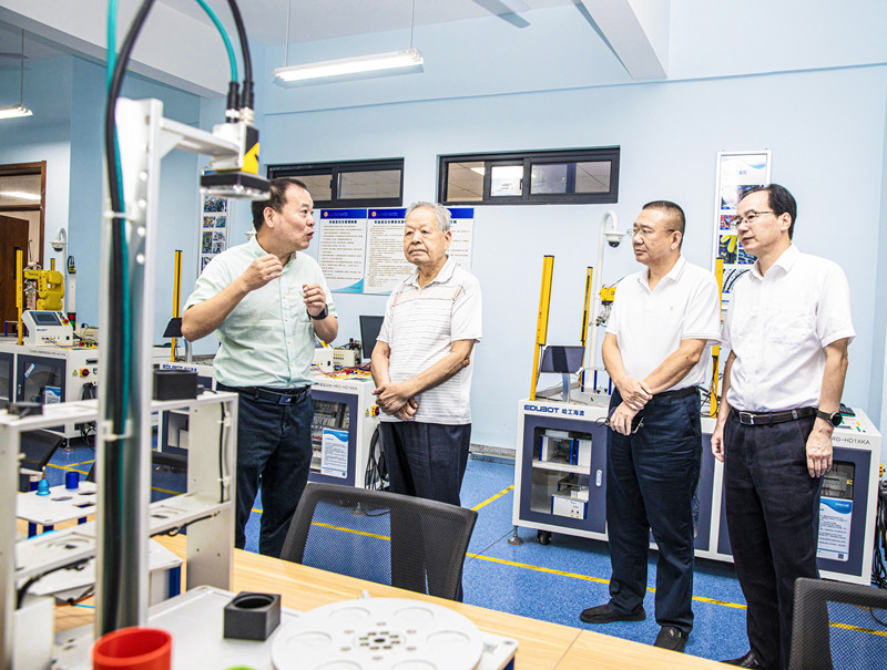 会前,参会人员参观了腾讯云互联网学院、机器人学院两所校企合作产业学院。