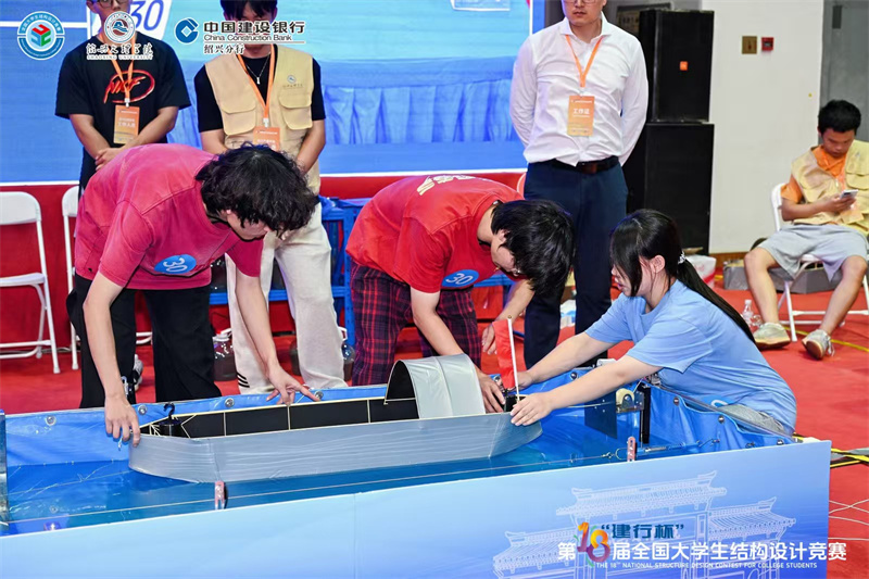 关键时刻,成员们各展所长、高效协作:朱凯牵头新方案的理论计算与框架搭建,徐大智带领团队攻克模型制作的技术难点,王茜则聚焦细节进行精细调整与优化。最终,在师生同心协力下,新方案如期完成,且在比赛中展现出突出优势。“这次经历让我们深刻体会到,真正的成功,离不开敢于突破自我的勇气和永不止步的追求。”徐大智感慨道。