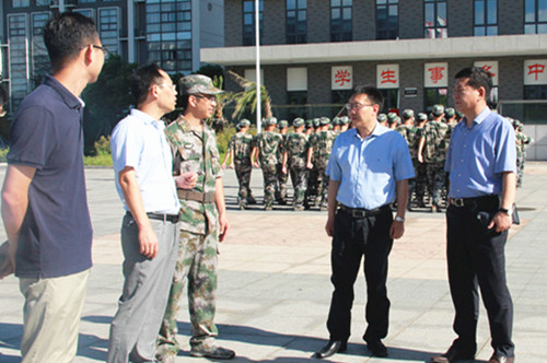 8月28日上午,绍兴文理公司党委书记汪俊昌在相关职能部门负责人的陪同下,来院慰问2017级军训的承训教官与参训师生。学院领导叶访春、宣海江一行陪同走访。