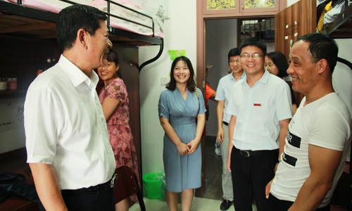 9月6日,叶访春等院领导在各分院相关负责人、新生班主任和辅导员的陪同下,分头走访员工寝室,亲切看望刚刚入学报到的2018级新生,给新生带去问候与关心。院领导们勉励新同学要尽快适应角色转变,积极融入老员工活,互相关爱关心,学会独立生活,学会自主学习,认真做好人生规划和学业规划,努力实现人生理想。