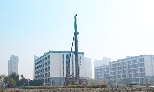 霜降节气,艳阳正浓。北区建设项目场地上打桩机“铛铛铛…,铛铛铛…”声响彻空中,随着 23日下午3点许十多米高的打桩机打下第一根桩,铿锵有力地昭示着二期建设项目中的两个主体项目——两幢员工公寓和三幢教学实验大楼项目施工建设正式开始。
