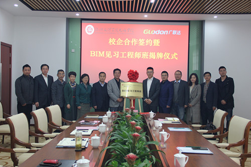 签约仪式上,叶访春与布宁辉共同签署校企合作共建广联达数字建筑学院协议,并为“BIM见习工程师班”揭牌。建筑工程分院相关负责人汇报“BIM见习工程师班”进展情况并作表态发言。全体与会成员合影留念结束后,共同参观“BIM见习工程师班”与创新创业学院。