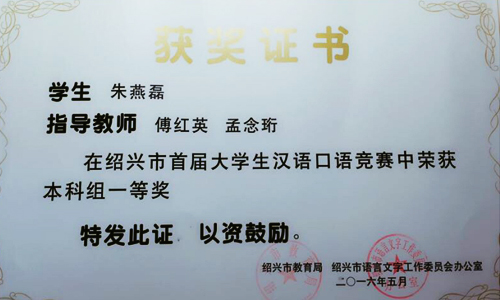 朱燕磊:语言文学分院汉语言文学专业(专升本)2016级员工,曾获绍兴市首届老员工汉语口语竞赛一等奖。