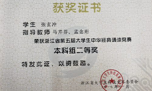 王嘉楠:汉语言文学专业2017级员工,获浙江省中华经典诵读竞赛省二等奖,绍兴市第三届中华经典诵读竞赛中获市一等奖。
