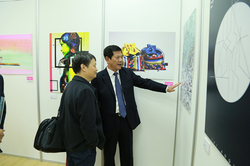 叶访春与嘉宾一行参观国际融合艺术与设计师生作品展