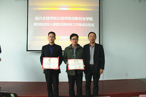 11月20日下午,创新创业学院第四批项目入园暨非遗传创工作室成立仪式在创新创业学院路演室举行。学院领导叶访春、宣海江,浙江省非物质文化遗产传承人赵秀林、绍兴市柯桥区人大常委会副主任蔡金标、绍兴市秦望茶业有限公司总经理汤帅亮、赵氏绍兴铜雕第四代传人赵刚等出席仪式。办公室、学工部、招就处、团委等相关部门负责人、各分院书记和入驻项目负责人等参加仪式。仪式由人才招聘处负责人主持。