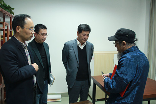 叶访春一行参观非遗传承铜雕工作室
