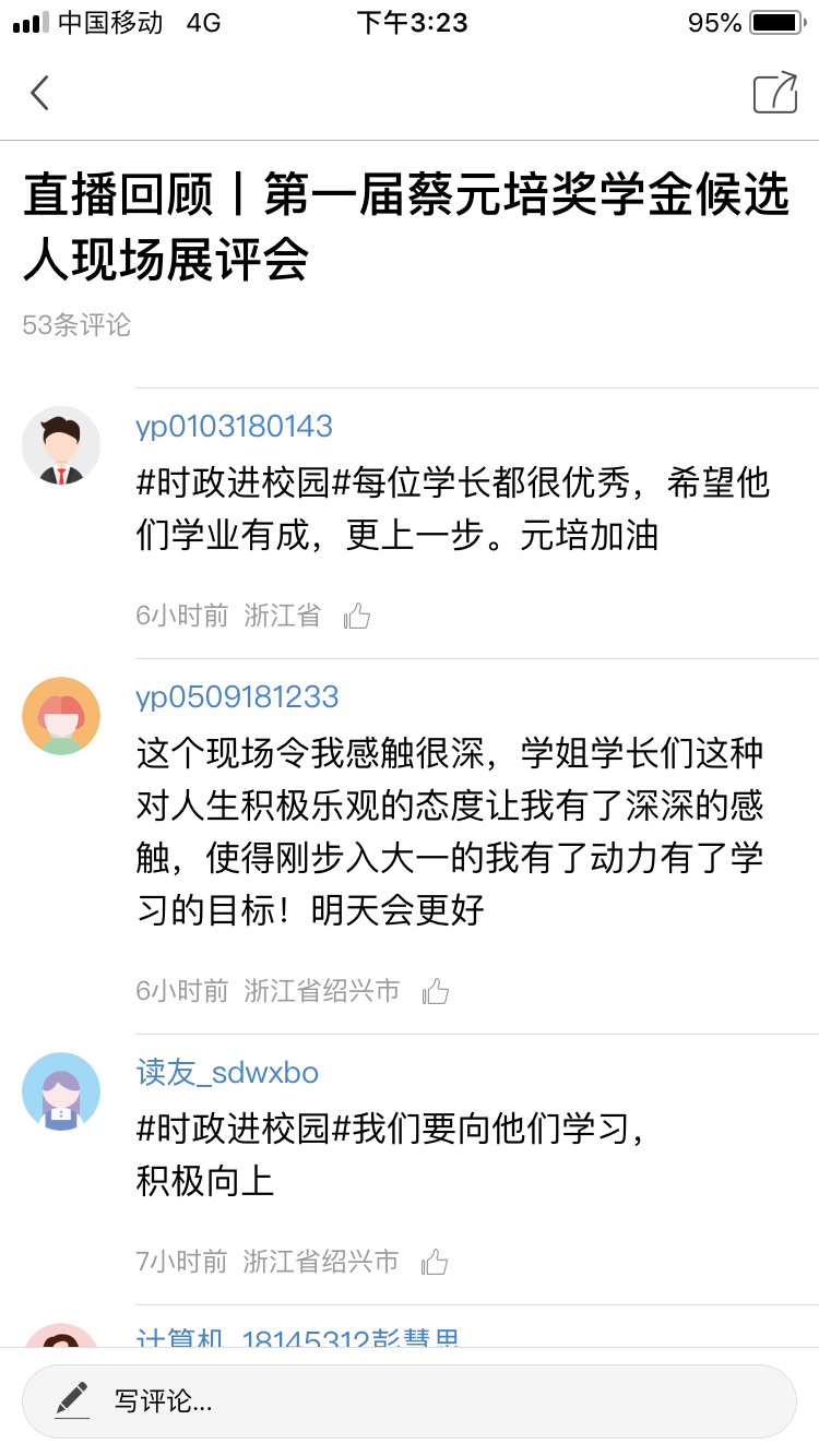 展示会当晚,浙江新闻客户端对本场评选活动进行了全程现场直播,吸引了广大师生的在线积极交流与互动,截止目前,点击量已超20万。
