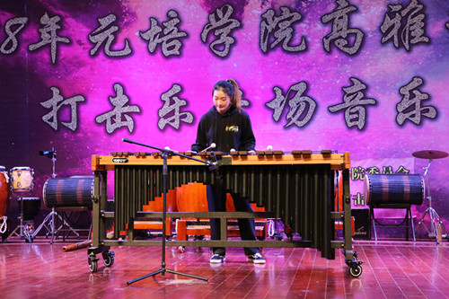 音乐会以《绍敲·稽山鼓韵》拉开序幕。这首作品创作于今年10月,表达了绍兴人民对美好生活的热爱;夏天、周仕两位老师联袂出演的打击乐与诗歌朗诵《2500年》,将现场气氛推向高潮;董金清的排鼓独奏曲《鱼跳龙门》、《手鼓的世界》,胡佳雯的马林巴曲、《将军行》等一系列打击乐作品的表演将整个音乐会气氛带向了顶峰,特别是周仕老师对各种鼓乐器的介绍,将在场的师生带入了鼓乐的神秘世界,令大家大饱眼福。随着最后一曲《黄河激浪》乐曲的结束,整场音乐会接近了尾声,师生们意犹未尽,纷纷称赞这场试听盛宴与高雅艺术之美。