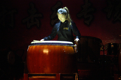 夏天老师与周仕老师表演打击乐与诗歌朗诵《2500年》