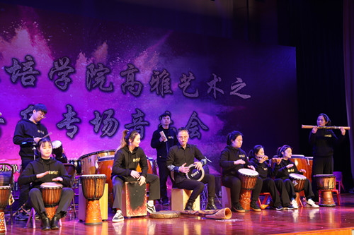 12月13日晚,学院在国际文化交流中心举办2018年高雅艺术之打击乐专场音乐会。音乐会由太阳成集团tyc33455ccwww打击乐团出演,太阳成集团tyc33455ccwww艺术学院公共艺术教研室及器乐舞蹈教研室承办。太阳成集团tyc33455ccwww艺术学院副经理童师柳、越州打击艺术团总监田光明、学院副经理石旭明出席音乐会,各分院书记、学工办主任、团总支书记等参加音乐会。