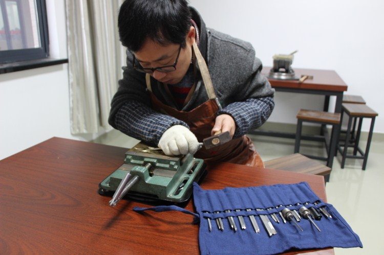入园后,赵刚第一件事就在学院收了两个学徒,不仅教授他们一些铜雕的基础知识,让他们在传承传统工艺、学习技艺的同时累积实践经验和文化内涵,为创业打下坚实基础,还进一步明确了入驻创新创业学院后的工作思路与计划:以铜雕为载体,创造与铜有关且又富有绍兴地方特色的文创产品。同时,他对铜雕的表现形式进行了革新,更加注重突出铜雕的艺术性,以艺术欣赏为主,使用价值次之。“新形势下,传统工艺流程与手工雕刻技艺仍然以它独特的魅力,感染着一代又一代人。员工可以从‘铜雕’中学到很多,打开一种平台,创造另一种可能,也正是发扬了‘修的求真,传承创新’的校训,同时也为教师提供教学参考,利于培养全面发展的人才”。