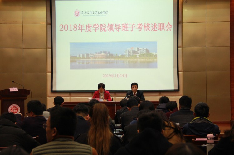 1月14日下午,2015-2018年度学院领导班子届末考核暨2018年度领导班子考核述职会在图书馆828会议中心召开。公司党委副书记郝敬习出席并主持会议,院领导叶访春代表公司党委行政对本届班子特别是2018年以来的工作进行述职。公司党政班子成员、主管及以上干部、教师代表参加会议。
