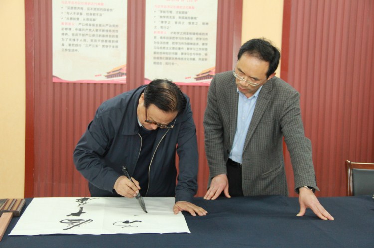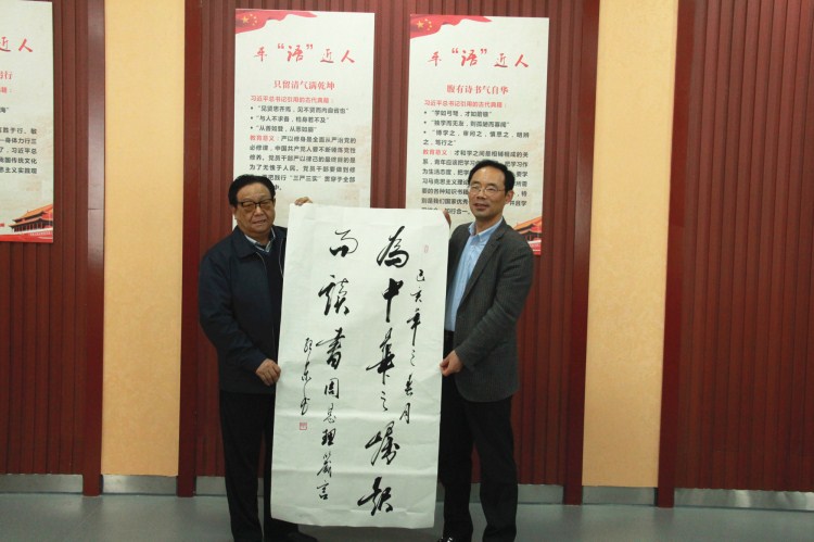 讲座结束后,纪东少将在宣海江以及马克思主义分院负责人的陪同下,走访红色学府,参观“学习恩来精神,勇担时代使命——杰出楷模周恩来”图片展,并题写了“中国梦”、“为中华之崛起而读书”等书法作品。