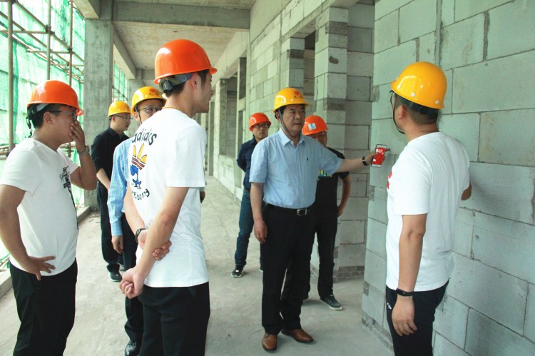 公司领导一行实地察看教学实验大楼、北区员工宿舍项目现场