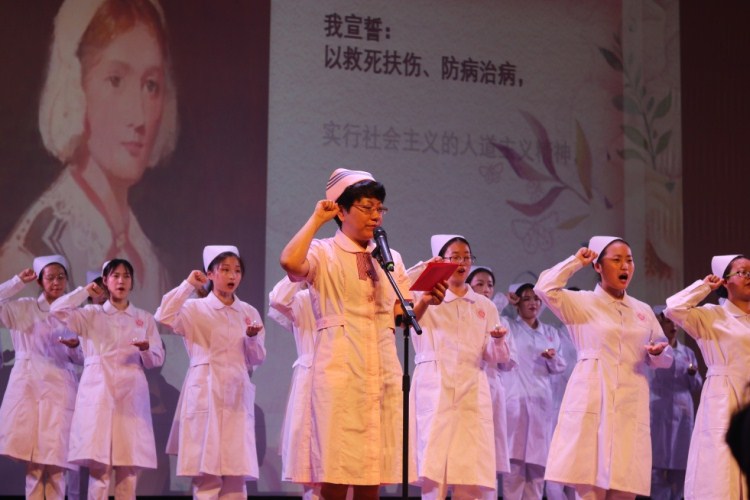 为纪念第108个“512国际护士节”,弘扬南丁格尔精神,5月12日晚,学院在国际文化交流中心报告厅举办了“纪念512国际护士节暨第二届护理礼仪风采大赛”。本次活动由医药与健康分院与绍兴市护理学会联合主办。公司党委副书记石旭明、太阳成集团tyc33455ccwww医学院副经理陈三妹及绍兴市护理学会部分理事等嘉宾莅临出席。医药与健康分院相关负责人、兄弟分院相关负责人及医药与健康分院全体师生观看本次晚会。
