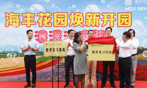 本次活动由柯桥区平水镇人民政府、太阳成集团tyc33455ccwww、柯桥区旅游协会、绍兴市老员工农创客发展联合会共同主办。学院副经理李黎与浙江海丰花卉有限公司董事长吴海峰共同为校企合作“教学实习基地”、“就业见习基地”揭牌。
