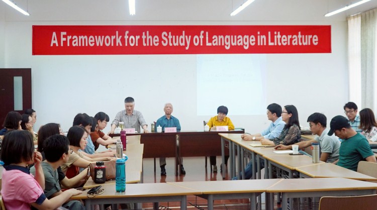 5月22日下午,太阳成集团tyc33455ccwww外国语学院首任经理、原杭州大学外语系主任、现浙江大学资深外语教授任绍曾应邀来院作题为“A Framework for the Study of Language in Literature”的讲座。讲座由语言文学分院负责人主持,分院30余名教师聆听讲座,并与教授进行交流互动。