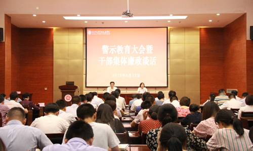 为贯彻落实省市和学校警示教育月活动有关部署,扎实推进全面从严治党向纵深发展,推动“清廉校园”建设取得新成效,6月12日下午,学院在828会议中心召开警示教育大会暨干部集体廉政谈话。公司党政领导班子成员、本次换届中退下来的原学院领导干部、学院全体中层及主管干部参加会议,党委书记叶访春发表讲话并提出要求。会议由纪委书记俞国芬主持。