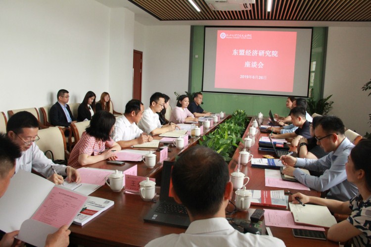 6月26日上午,“东盟经济研究院”座谈会在学院国际文化交流中心举行。新华社中国经济信息社(简称“中经社”)技术与数据中心副总经理张瑾一行来访公司,就“东盟经济研究院”项目开展情况进行考察和指导。学院经理沈红卫、副经理周思红,合作共建单位浙江图胜数字科技有限公司总裁吴代君,绍兴市委组织部人才处处长马彩君,越城区委人才办专职副主任吴燕、人才局局长谢菁等出席会议。学院和浙江图胜科技有限公司相关工作负责人、中经社技术与数据中心考察团成员等与会。座谈会由吴代君主持。