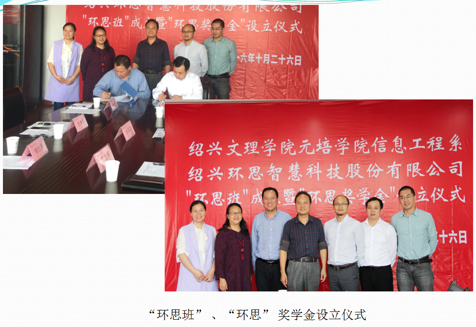 (1)与多家知名企业开展合作,分别与绍兴市公安局签订了网络信息安全共建实验室合作项目,与清华大学无锡物联网研究中心、中国联通绍兴分公司三方共建物联网实验室,与环思智慧科技股份有限公司签订人才联合培养协议,创设人才订单式培养“环思班”,并设立环思奖学金。2018年与行业领军企业腾讯云、慧科集团进行专业共建,合作成立我省独立学院首家“腾讯云互联网学院”。