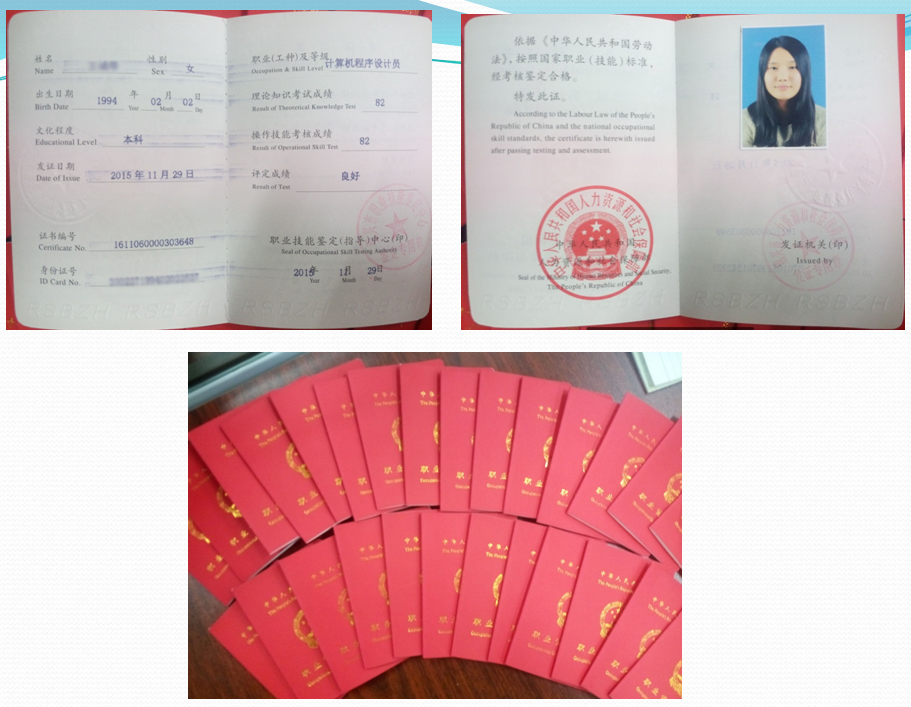 员工获得的国家职业技能资格证书