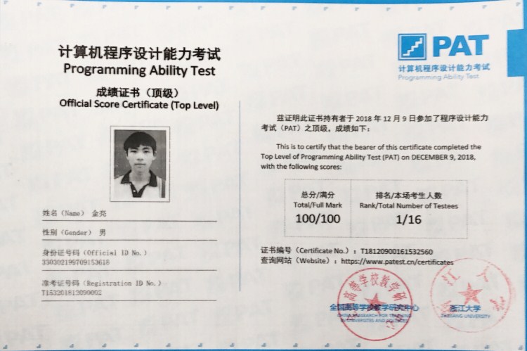鼓励员工参加pat考证,pat为企业选拔人才提供参考标准,为考证员工获得企业敲门砖。多人在pat乙级中满分,其中员工金亮在2018年冬季考试中只用1个小时(3小时考试时间)获得了顶级(乙级中文题、甲级与顶级都是英文题)满分的好成绩。