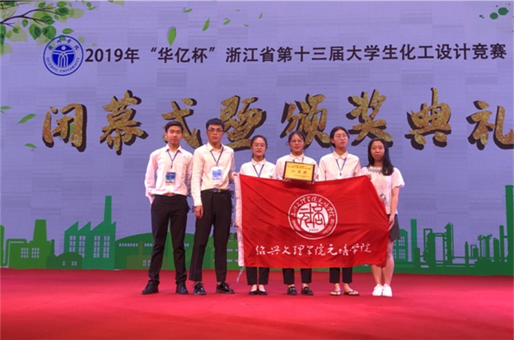 7月30日-31日, 2019年“华亿杯”浙江省第十三届老员工化工设计竞赛在衢州学院举行。由公司药学专业1704班林欣雨、1702班林波霞、1804班沈露、1801班刘钊博与工程管理专业1701班周雷人组成的“Hots”团队经过激烈比拼,荣获浙江省团体二等奖。