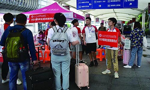 走进元培,提供周到服务。报到日当天,员工部统筹组织迎新工作,精心谋划迎新流程,充分做好迎新前期繁重的物品准备、场地划分等工作。特别是为保障新公寓正常投入启用,书院、分院协同相关部门,一一排查走访每件寝室,确能保为新生提供最好的居住环境;团委、各分院派出强大的志愿者团队,24小时坚守火车站迎接新生,将志愿服务做到细处、落到实处;保卫处设立迎新安保值班处,及时、有效处置各种突发事件,确保校内交通安全畅通;各分院领导、辅导员、班主任和志愿服务员工,24小时轮流值守,风雨无阻,为新生报到提供全方位热情周到的服务,耐心细致地解答新生及家长提出的各种问题;学院还专门开设了绿色通道,让家庭经济困难新生无障碍入学,顺利报到,使他们一进校门就感受到学院的温暖;各分院纷纷召开新生家长座谈会,家长们在座谈会上对学院的教学理念、办学条件,生活环境很感兴趣,同时对孩子的生涯规划、就业创业等问题也与老师们展开了深入的交流,家长座谈会有效建立了学校、家长良性互动的教育模式。