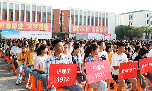 8月30日下午,学院2019级新生开学典礼在元培广场隆重举行。学院领导班子全体成员,各分院、职能部门负责人,教师代表,全体辅导员,2019级新生,新生班班主任,员工家长代表参加典礼。公司党委副书记石旭明主持开学典礼。