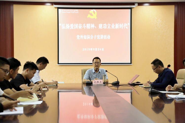 按照学院“不忘初心、牢记使命”主题教育部署安排,9月24日下午,学院经理沈红卫在办公室、组织宣传部负责人陪同下赴信息与机电工程分院开展座谈调研,并作为省委统战部高公司党外知识分子宣讲团成员,为师生作“弘扬爱国奋斗精神、建功立业新时代”主题宣讲。信息与机电工程分院负责人及师生代表等聆听宣讲报告并参加座谈。