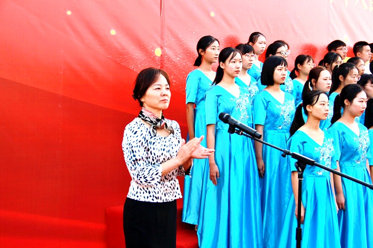 公司全体师生党员、员工代表和建设银行绍兴分行的党员代表同唱国歌