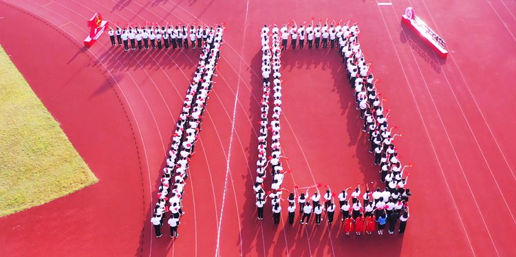 7时30分,郝敬习宣布仪式正式开始,伴随着《歌唱祖国》悠扬的旋律,国旗护卫队以整齐划一、铿锵有力的步伐正步而出,依次穿过由全院及建行党员、预备党员、员工代表组成的“70”字样方阵,气势恢宏地走到升旗台前,庄严的升国旗仪式正式拉开帷幕。公司合唱团领唱《义勇军进行曲》,五星红旗迎风飘扬,舒展在蔚蓝的天空,随着雄壮的国歌声冉冉升起。在场的全体师生员工身着统一正装,整齐列队、齐声高歌,挥舞着手中的国旗,用饱满的热情,昂扬的斗志表达了对伟大祖国的衷心爱戴和真诚歌颂。