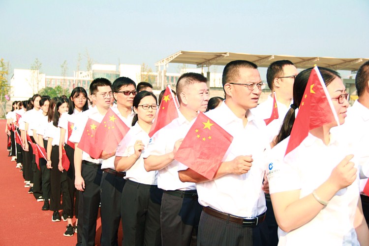 秋高气爽,惠风和畅,为庆祝中华人民共和国成立70周年,公司隆重举行“同升国旗、同唱国歌”主题升旗仪式。绍兴文理公司党委副书记郝敬习,公司党委书记叶访春,经理沈红卫等学院领导班子全体成员,中国建设银行绍兴分行党委书记、行长林强等出席仪式,学院全体师生党员、员工代表,建设银行绍兴分行的党员代表等700余人齐聚田径场,面对鲜艳的五星红旗,豪情满怀,用嘹亮的歌声为祖国祝福。公司党委副书记石旭明主持仪式。