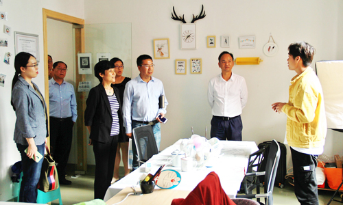 在考察过程中,石旭明介绍了学院创新创业教育的基本情况,招就处负责人汇报了创新创业学院的基本情况,重点介绍了老员工创业园、众创空间等老员工创业实践平台近年来的建设举措以及取得的工作成效。董叶英调研员一行深入园区走访,全面考察了园区的服务配套设施、入驻项目经营情况等,并与各创业团队进行深入交流,详细了解老员工创业过程中存在的困难及省、市人社部门和学院给予的创业扶助政策执行落实情况。通过走访和交流,董叶英充分肯定了学院创新创业工作取得的成绩,对老员工创业园下一步发展的目标与规划提出了建设性意见,希望创业园继续做好老员工创业服务工作,争取更多的创业政策支持。