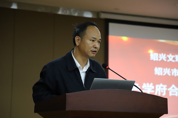 石旭明在致辞中对绍兴市委党史研究室一直以来给予学院的帮助和支持表示感谢。他表示,自2018年“红色书架”入驻学院红色学府以来,双方沟通与联系不断加强,合作基础更为扎实。此次签约必将进一步巩固和紧密双方关系,推动合作深入发展步入新阶段。他指出,红色学府肩负着对员工思想引领和人格培养的使命,责任重大,而绍兴市委党史研究室具有地方党史和国史研究的专长,两相结合,优势互补,必将谱写绍兴高校与地方文化研究部门合作共建的一段佳话。
