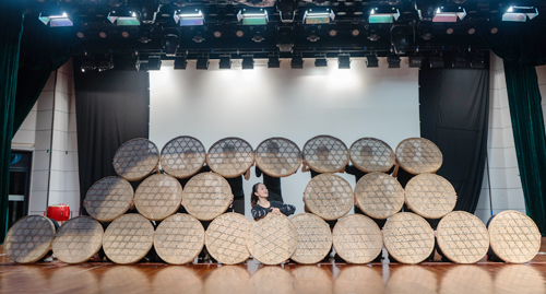 在这六个月的备赛时间里,陆陆续续地有许多同学因为各种原因离开,而每一次新成员的加入,对何扬来说,都是一次挑战。直至排练后期,舞团也因为各种原因招募了很多新人演员,在熟练度、默契度都有所欠缺的情况下,何扬对于这个作品的严谨态度并没有因此而懈怠,一个动作还是要“抠”上七八遍,直到每个演员转身的角度,举起道具的高度,甚至是抬头的时间、向前走的节点达成一致。舞蹈中最令人印象深刻的,是仅仅四个八拍的象征鉴湖水波的动作,何扬不知道带着女孩们上上下下举着筛子训练了多少个来回。那些连贯动作对于舞蹈团的姑娘们是每人踏出一步,踏稳在台上,定点在拍上。而对于何扬来说,这每一步都是踏在心尖上,每一个动作都是在心中预演了无数次。“我对她们要求很高,只有这样的标准才能取得成绩。”何扬笃定地说。