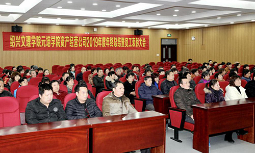 1月9日下午,资产经营公司2019年度工作总结暨员工表彰大会在红色学府会议厅隆重召开。学院副经理沈玮出席大会,并为优秀员工颁奖。资产经营公司全体员工、经营户代表一百二十余人参加会议。