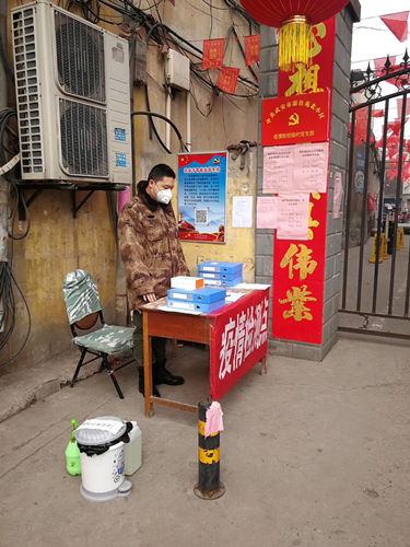 (申振国同学在社区一线参加防疫志愿服务)