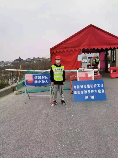 在防疫卡点执勤的丁嘉豪