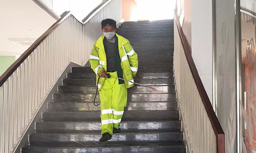 基建后勤处在疫情发生后,第一时间根据学院疫情防控统一部署,多举措配合学院齐心抗“疫”。据部门负责人介绍,部门积极做好人员排查,全面掌握物业公司员工、零建维修、保洁人员等各类人员身体健康状况、假期去向等信息,并实行数据动态更新管理,进行精准排查,明确身体状况、联系方式等信息,进行动态跟踪。组织物业公司对行政值班及办公区域开展环境消杀工作,加强公共区域内的公共设施及主要接触部位消毒,特别是对走廊、门卫、楼梯、卫生间、公共通道的楼梯扶手、门把手、开关等加大消毒频次、力度。