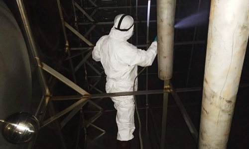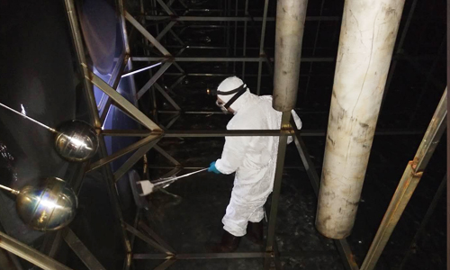 做好水箱内部清洗并喷洒二氧化氯消毒液