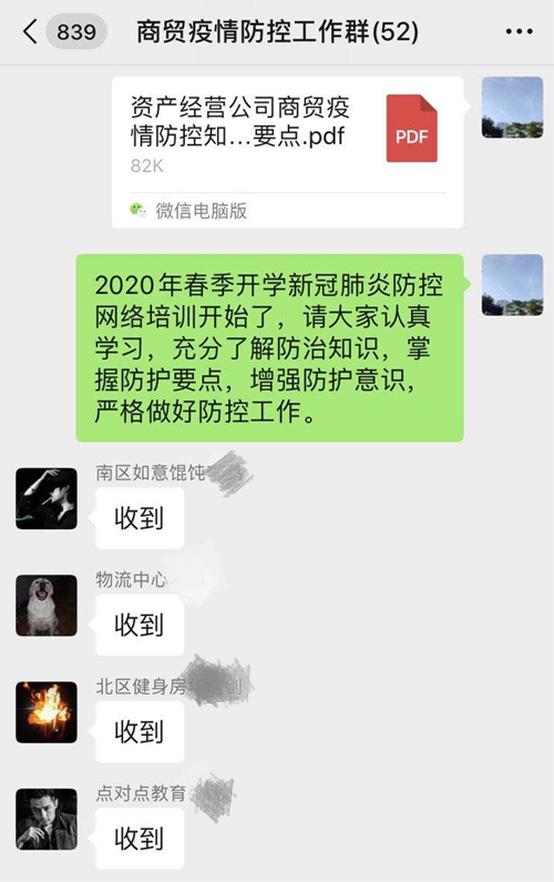 为有效普及新冠肺炎疫情防控知识,落实落细疫情防控工作,为春季开学保驾护航,近日,资产经营公司通过钉钉、微信工作群开展为期2天的线上疫情防控知识培训。公司全体员工、商贸经营户等370多人参加培训。
