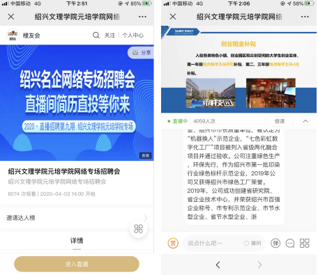 4月2日下午,绍兴名企面对面----元培学院网络专场直播招聘活动顺利举行,三力士股份、巴鲁特服饰、七色彩虹印染等3家绍兴名企HR做客直播间。本场招聘会由绍兴市人社局、绍兴市教育局主办,绍兴市人才服务中心和元培学院等共同协办,现场参与直播累计8000余人次,留言互动200余人次。