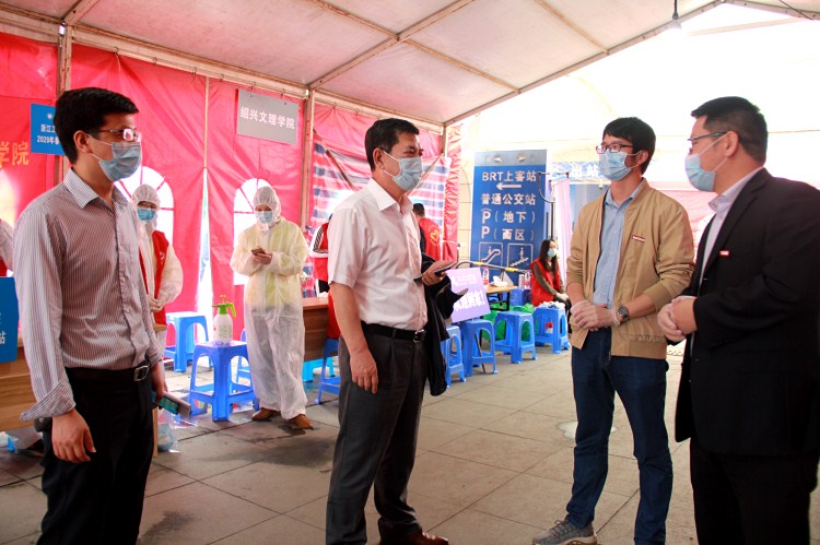 5月6日上午,学院春季开学返校第一天,学院领导叶访春、沈红卫、石旭明在办公室负责人的陪同下,分别前往柯桥客运中心(航站楼)、绍兴北站(高铁站)、综合检测服务点、绍兴客运中心、汽车西站、奥体中心,亲切看望慰问新学期首批返校员工、家长及接站工作人员,实地了解员工抵绍返校和疫情防控等有关情况。