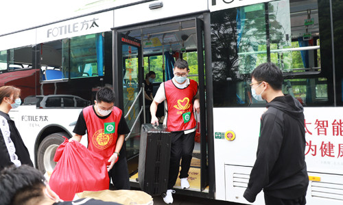 在返校报到流程各个节点,工作人员和志愿者严阵以待,为同学们平安返校做了充分准备和悉心安排。“我们终于回来了,还是我们熟悉的校园,还是我们亲切的老师。”随着第一辆载着返校员工的大巴车驶近学校,不少同学兴奋地说。