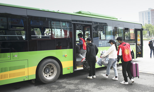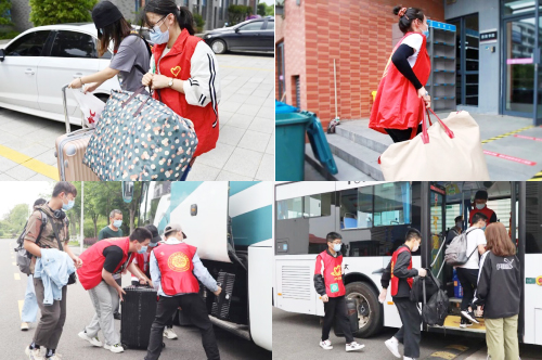 返校期间,校园里处处都能看到“红马甲”忙碌的身影。随着同学们陆续分批抵达,一大清早,各个服务点的志愿者们就早早开始了志愿服务工作,他们每天分三班轮流开展工作,每班20人左右,从早上八点到晚上八点。返校高峰一波接一波,志愿者维持秩序和搬运行李的频率也骤然提升,往往忙碌到傍晚时分,人流才渐渐减少。