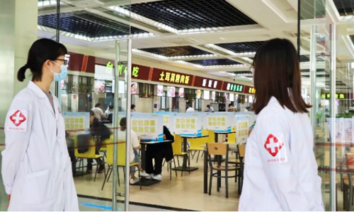 “同学,你好!请更换口罩,保持安全距离,到测温区稍等一下,谢谢!”返校期间,志愿者们化身“交通员”“守门员”“监督员”“健康检查员”“宣传员”……维持秩序、引导站位、检查健康卡、监测体温、监督提醒……为重返校园的员工提供便利服务,有效加快员工入校安顿步伐,他们用靓丽的志愿者马甲绘制成一抹抹最暖心的校园色彩。